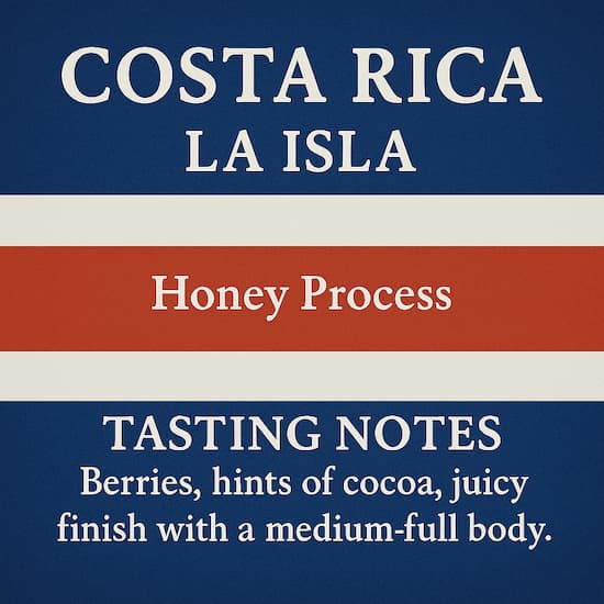 La Isla is a family‑run farm in Naranjo, in the heart of the West Valley. The farm sits at about 1,560 metres and specialises in honey‑processed microlots. The Jiménez and Padilla family handpick cherries at peak ripeness and keep lots separated by variety. Villa Sarchí is a dwarf mutation of Bourbon widely grown in this region for its ability to thrive at high altitude and deliver clean, expressive cups.