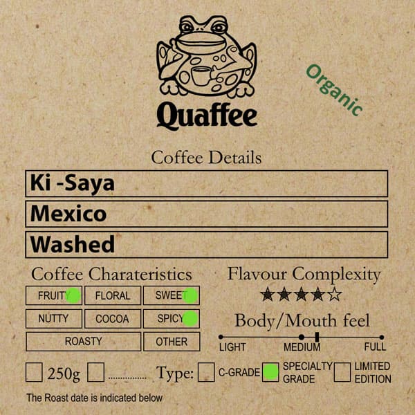 Ki-Saya is an organic washed coffee developed by Covoya and first launched in 2024. It combines lots from various smallholder farmers across Chiapas, selected and profiled at origin to maintain consistency.